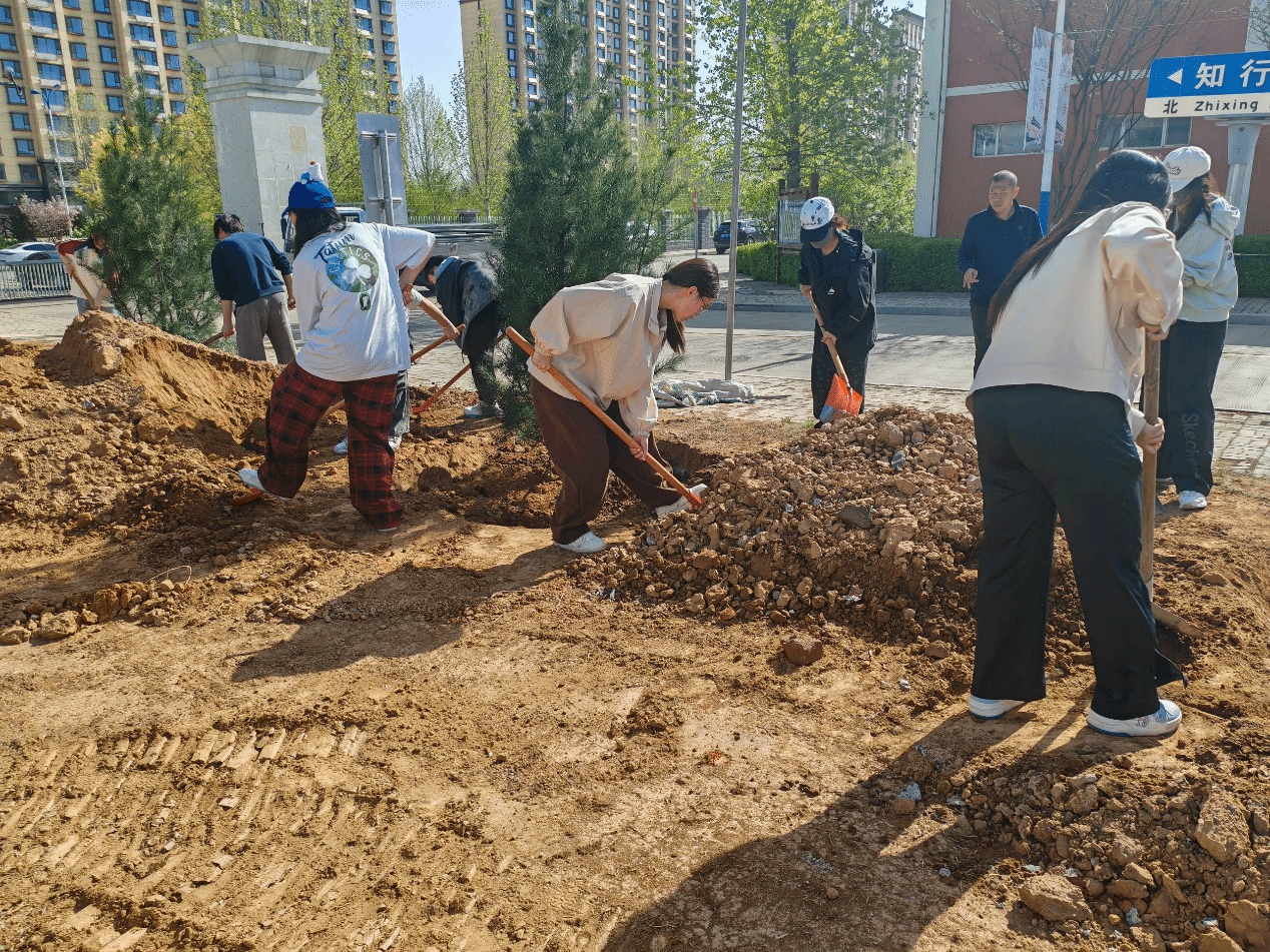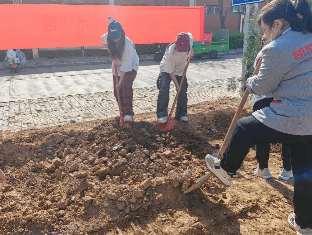 在专业指导下,师生们热情高涨,迅速投入到植树环节。大家分工协作,扶苗、填土、夯实,每一个动作都饱含着对大自然的敬畏与爱护。经过共同努力,一棵棵新苗稳稳扎根校园,为春日校园再添新绿。
