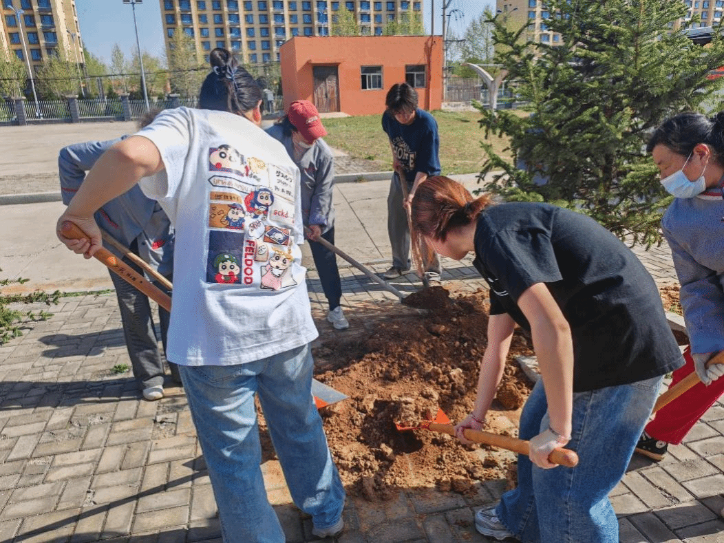 每一抹绿色都是大自然馈赠的礼物,每一片新绿的绽放都承载着对生活的热爱与对未来的期许。在这个春风和煦、万物复苏的美好季节里,4月20日早上,我系“健康同行”环保志愿者工作站携手五龙物业,在五龙校园内开展植树活动,以实际行动践行环保理念,为校园增添盎然生机。