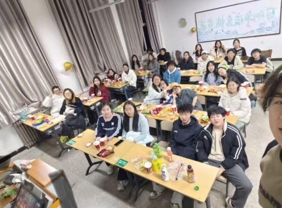 健管 2401 班则别出心裁地打造了一场无歌舞、重互动的元旦派对。同学们齐动手布置教室,彩带、气球、彩灯将班级装点得温馨又喜庆。大家围坐一堂分享零食, 一同观看跨年晚会, 在“你画我猜”“夹气球跑”等互动游戏中尽情释放学业压力。没有华丽的舞台,却有最真挚的陪伴,师生围坐畅谈,其乐融融的氛围让每一位同学都倍感亲切。